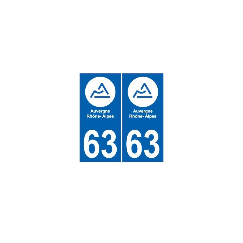 Autocollants Stickers aux dimensions des plaques d'immatriculation du département 63 Auvergne ville sticker officiel et conforme aux dimensions des plaques d'immatriculations d'origines pour voiture auto.