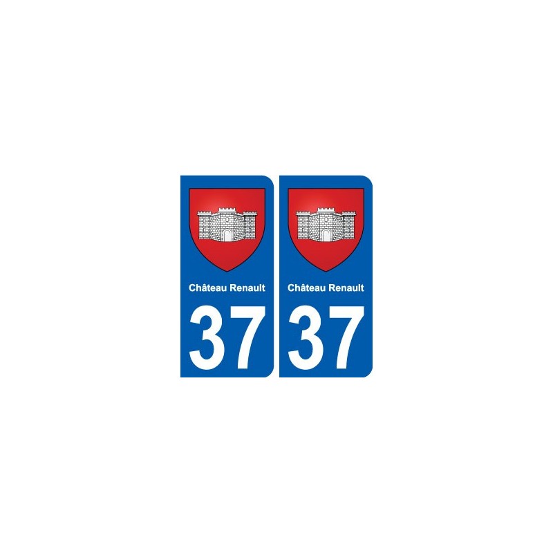 Autocollant plaque immatriculation blason département 37 Château-Renault ville stickers