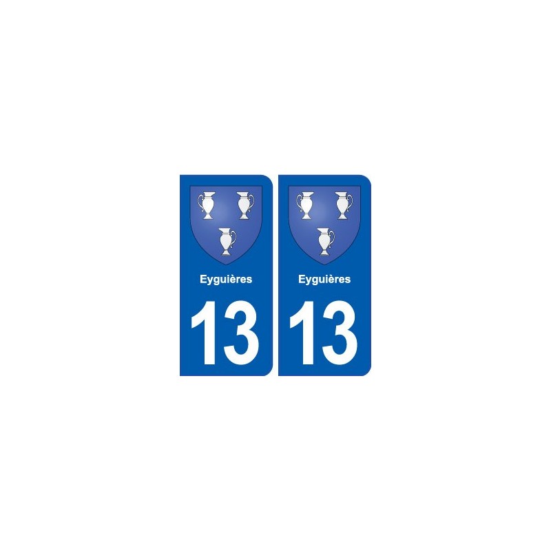 Autocollants Stickers aux dimensions des plaques d'immatriculation du département 13 Eyguières blason ville conforme aux dimensions des plaques d'immatriculations d'origines pour voiture auto.