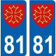 Autocollant plaque immatriculation auto blason département 81 Occitan ville sticker