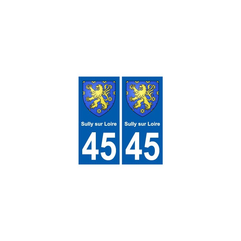 Autocollants Stickers aux dimensions des plaques d'immatriculation du département 45 Sully-sur-Loire blason officiel et conforme aux dimensions des plaques d'immatriculations d'origines pour voiture auto.