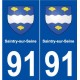 Autocollant plaque immatriculation département 91 Saintry-sur-Seine blason stickers ville