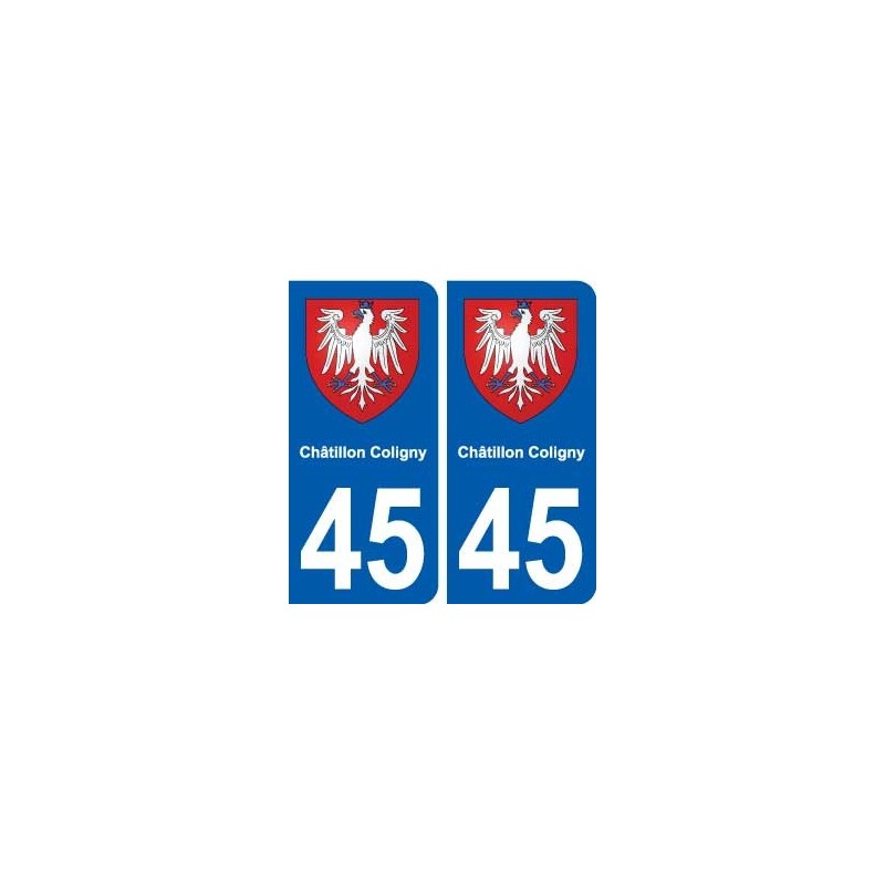 Autocollant plaque immatriculation blason département 45 Châtillon-Coligny blason