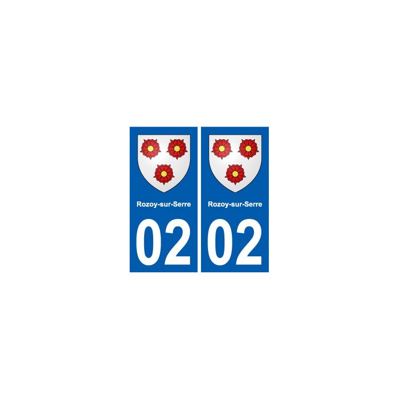 Autocollants Stickers aux dimensions des plaques d'immatriculation du département 02 Rozoy-sur-Serre blason ville conforme aux dimensions des plaques d'immatriculations d'origines pour voiture auto.