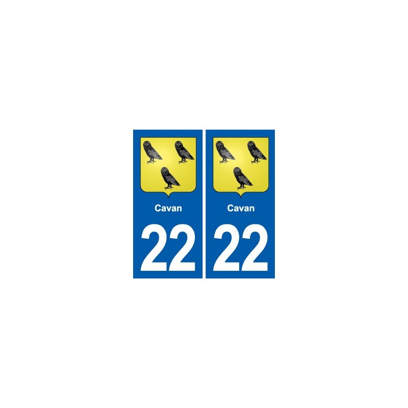 Autocollants Stickers aux dimensions des plaques d'immatriculation du département 22 Cavan blason ville conforme aux dimensions des plaques d'immatriculations d'origines pour voiture auto.