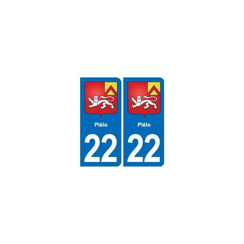 Autocollant plaque immatriculation blason département 22 Plélo blason stickers ville