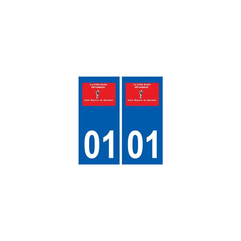 Autocollants Stickers aux dimensions des plaques d'immatriculation du département 01 Saint-Maurice-de-Gourdans logo ville conforme aux dimensions des plaques d'immatriculations d'origines pour voiture auto.