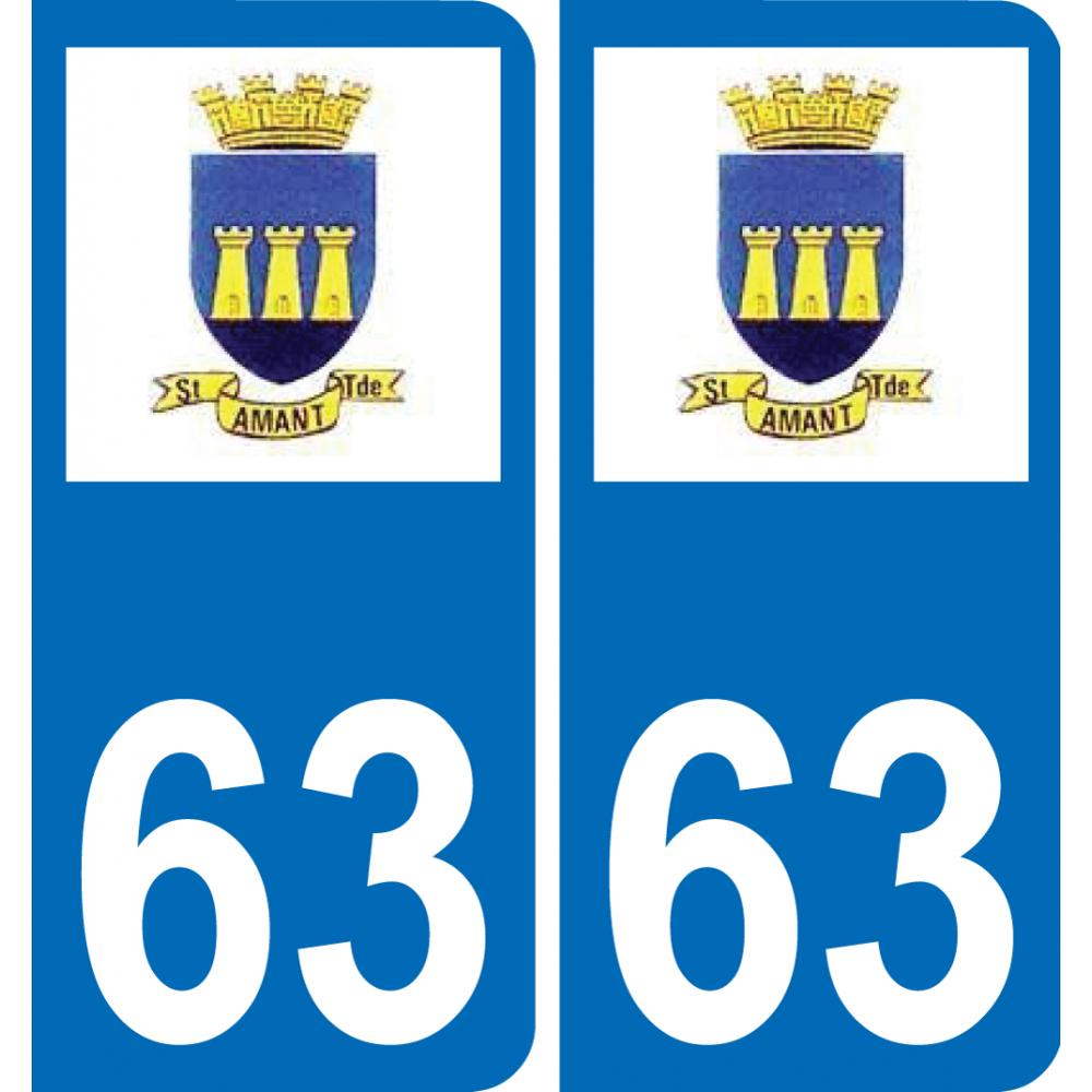 Autocollant plaque immatriculation 63 Saint-Amant-Tallende logo strickers ville