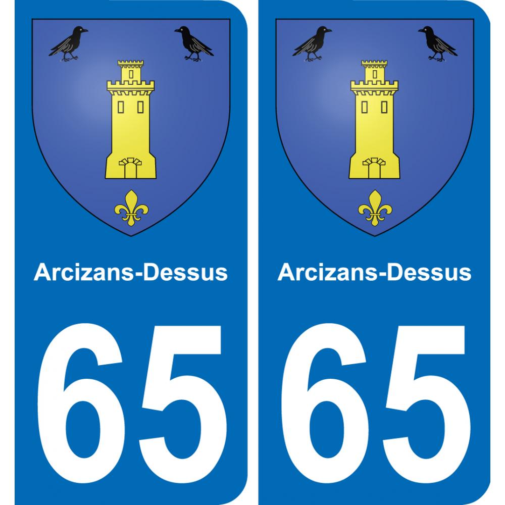 Autocollant plaque immatriculation auto blason département 65 Arcizans-Dessus ville sticker