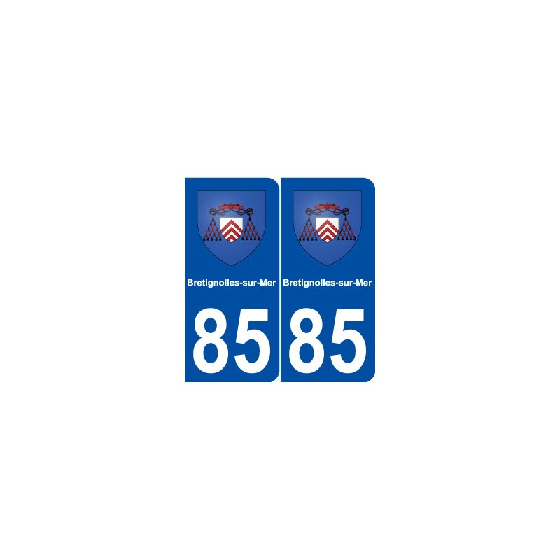 Autocollant plaque immatriculation 85 Bretignolles-sur-Mer blason strickers ville