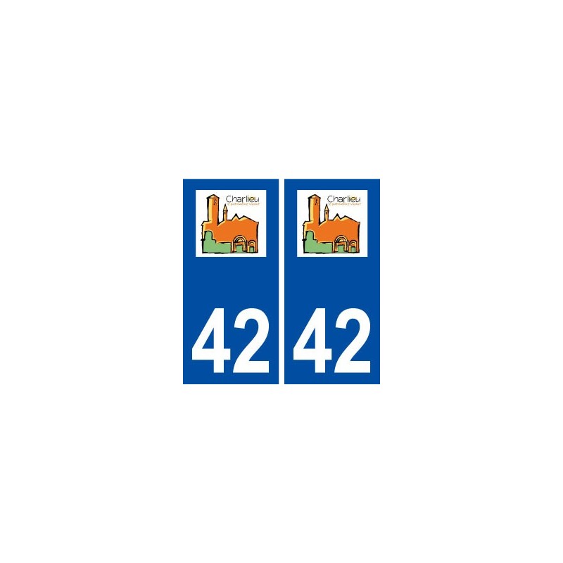 Autocollants Stickers aux dimensions des plaques d'immatriculation du département 42 officiel, Charlieu logo ville et conforme aux dimensions des plaques d'immatriculations d'origines pour voiture auto.