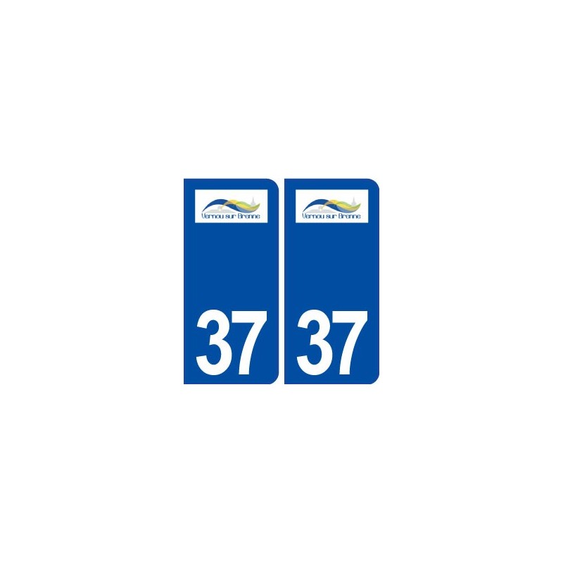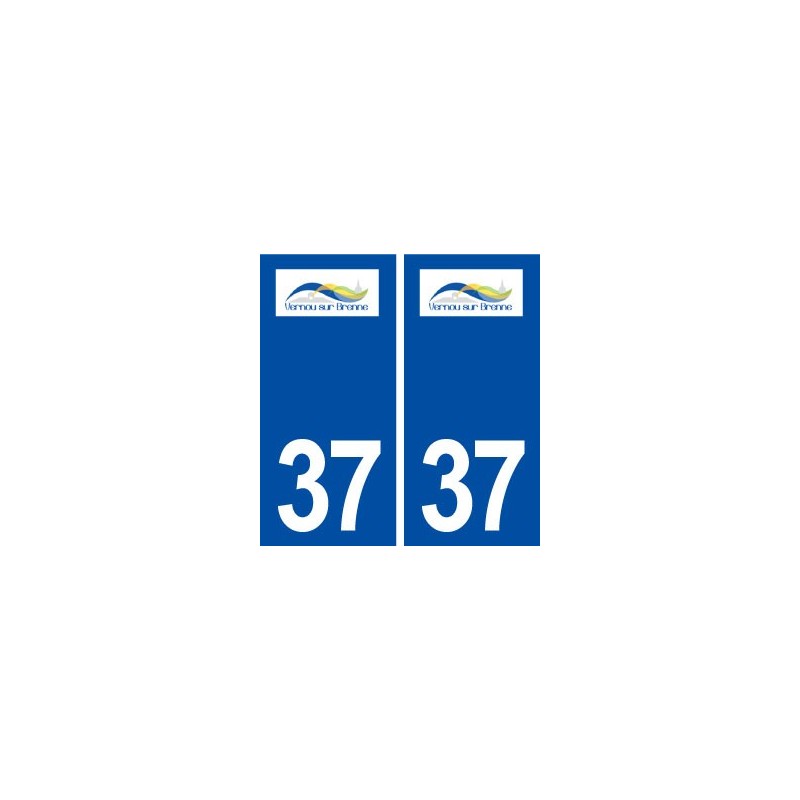 Autocollant plaque immatriculation blason département 37 Vernou sur Brenne logo