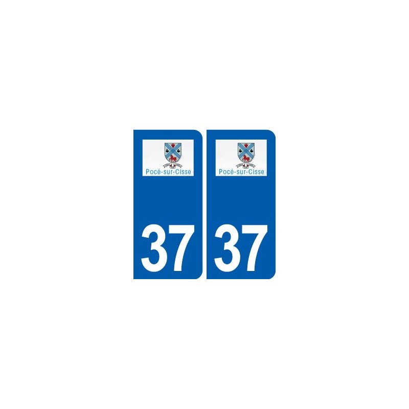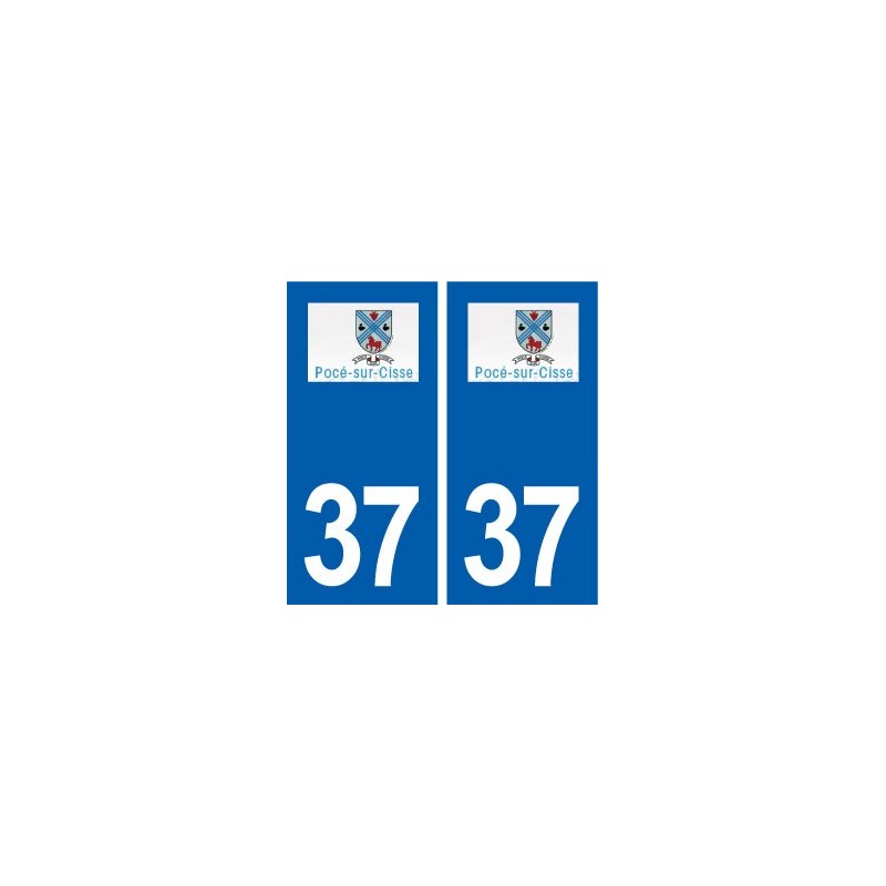 Autocollant plaque immatriculation logo département 37 Pocé-sur-Cisse logo ville stickers